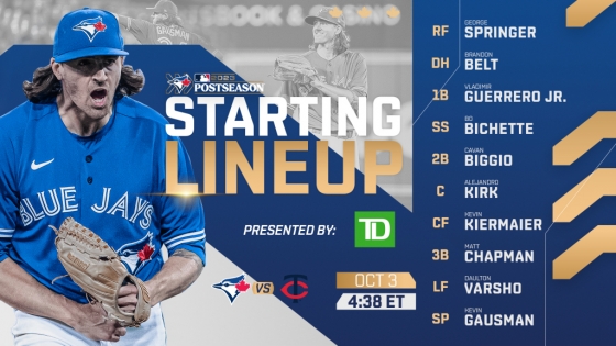 한편 토론토는 미네소타와 와일드카드 1차전 선발 라인업을 발표했다. 조지 스프링어(우익수)-브랜든 벨트(지명타자)-블라디미르 게레로 주니어(1루수)-보 비셋(유격수)-캐반 비지오(2루수)-알레한드로 커크(포수)-케빈 키어마이어(중견수)-맷 채프먼(3루수)-달튼 바쇼(좌익수)로 타선을 구성했다. 선발은 케빈 가우스먼.