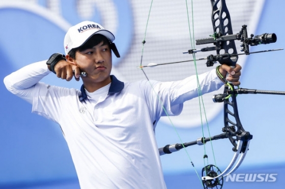 한국 양궁의 대회 첫 메달은 익숙한 리커브가 아닌 컴파운드에서 나왔다. 주재훈(한국수력원자력)-소채원(현대모비스) 조가 은메달을 수확했다.