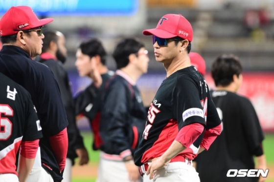 이에 맞서 KT는 조용호(우익수)-황재균(3루수)-알포드(좌익수)-박병호(지명타자)-배정대(중견수)-장성우(포수)-김상수(유격수)-오윤석(1루수)-박경수(2루수) 순으로 선발 타순을 구성했다. 선발 투수는 배제성이었다.