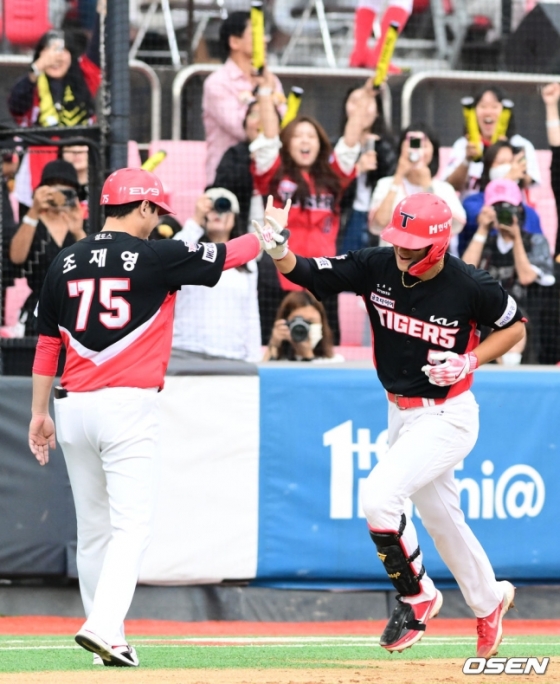 KIA 타이거즈가 활화산처럼 터진 막강 화력을 앞세워 KT 위즈를 꺾고 더블헤더 1차전을 승리로 장식했다. 가을야구를 향한 희망도 계속해서 이어갔다.
