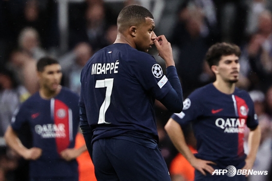 뉴캐슬전 부진에 충격에 빠진 킬리안 음바페(왼쪽). /AFPBBNews=뉴스1