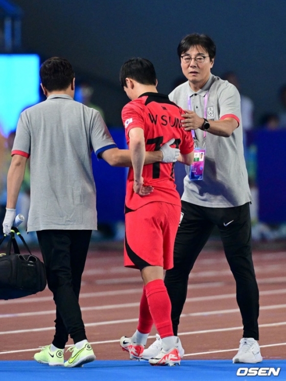 엄원상은 그라운드에 쓰러졌고 고통스러워했다. 결국 후반 21분 부상으로 안재준(부천FC)과 교체아웃됐다. 황선홍 감독도 걱정스러운 눈빛으로 엄원상을 쳐다봤다.
