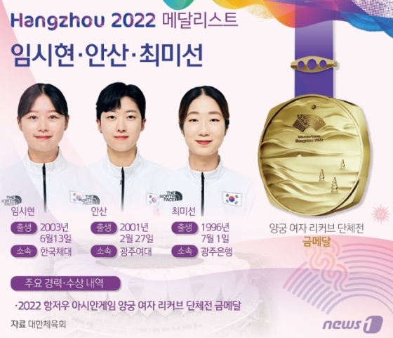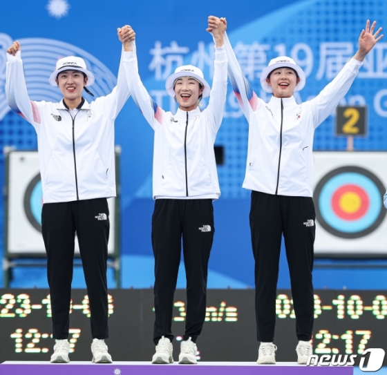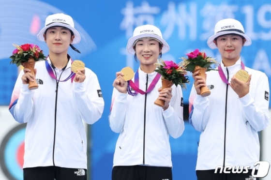 안산(22·광주여대), 임시현(20·한국체대), 최미선(27·광주은행)으로 구성된 대표팀은 6일 중국 항저우의 푸양 인후 스포츠센터 양궁장에서 열린 2022 항저우 아시안게임 양궁 리커브 여자 단체전 결승에서 중국(리자만, 하이리간, 안치쉬안)을 세트 스코어 5-3(58-58, 55-53, 55-56, 57-54)으로 제치고 금메달을 따냈다.