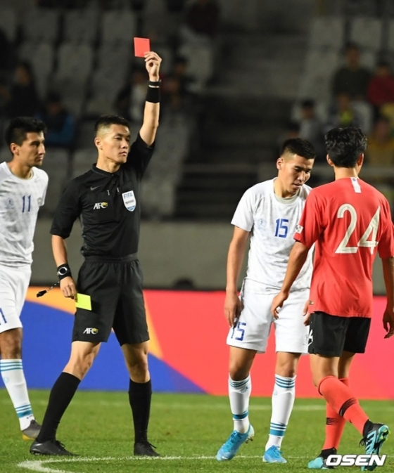 당시 우즈베키스탄은 상당히 과격한 축구를 펼쳤다. 공이 아닌 한국 선수들의 발을 향해 태클을 날릴 때가 많았고, 이 과정에서 한국 공격수 엄원상이 상대 위험한 태클에 넘어져 부상을 당했다. 경기 내내 거친 플레이를 펼친 부리에프는 후반 29분 경고 누적 퇴장을 당했다.