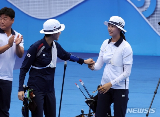 괜한 말은 아니다. 경험이 부족한 임시현은 경기가 뜻대로 풀리지 않을 때면 당황하는 기색이 역력했다. 혼성전 금메달을 합작한 이우석도 "시현이의 눈에 초점이 없는 게 보여서 긴장을 풀어주려고 노력했다"고 말하기도 했다.