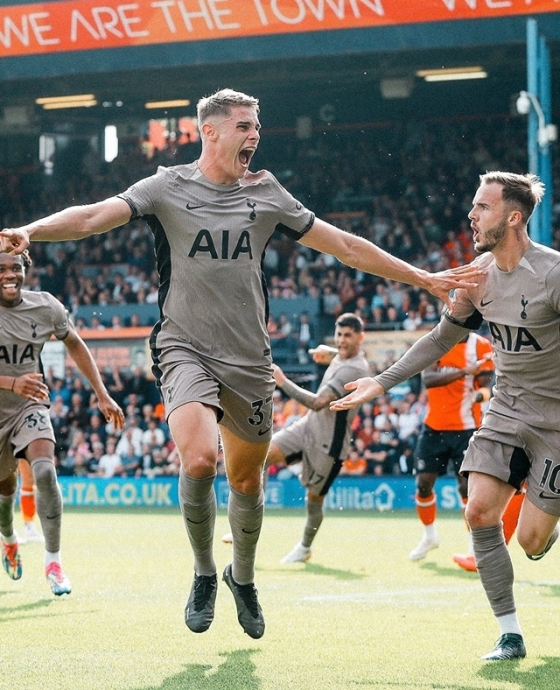 토트넘은 7일(한국시간) 영국 루턴의 케닐워스 로드 스타디움에서 열린 2023~2024 잉글랜드 프리미어리그(EPL) 8라운드 루턴 타운과 원정경기에서 1-0 짜릿승을 거뒀다. 이로써 8경기 무패 행진을 이어갔다. 올 시즌 6승 2무, 승점 20을 기록하고 리그 2위에서 선두로 올라섰다. 아직 한 경기를 덜 치른 맨시티(승점 18)가 2위로 내려갔다.