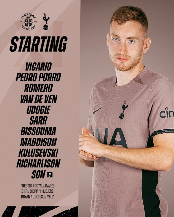 손흥민과 함께 히샬리송, 제임스 매디슨, 데얀 쿨루셉스키가 2선에서 공격을 지원했다. 파페 사르와 비수마가 중원을 조율했다. 포백은 왼쪽부터 데스티니 우도지, 크리스티안 로메로, 반 더 벤, 페드로 포로였다. 골문은 굴리엘로 비카리오가 지켰다. 루턴 타운은 4-4-2 포메이션으로 맞섰다.
