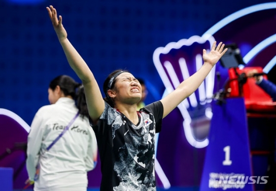 지난 8월 세계개인배드민턴선수권대회에서 한국 선수 최초로 단식 우승을 차지한 뒤 이번 아시안게임에서도 금메달을 따내고 포효했다.