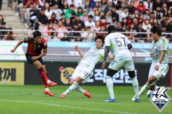 전북이 선제골을 터트리며 '파이널 A'를 외쳤다. 후반 15분 왼쪽 측면에 있던 안현범이 수비 뒷공간으로 파고드는 이준호에게 패스했다. 이준호가 중앙으로 낮게 패스했고 볼은 나상호에 맞고 한교원에게 흘렀다. 이를 한교원이 밀어 넣어 골망을 흔들었다.