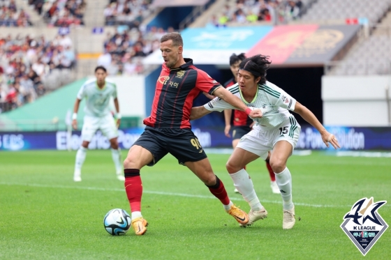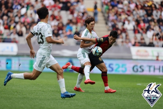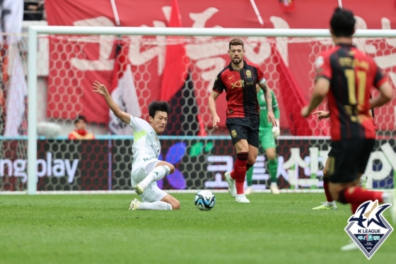 팽팽한 공방전이 이어졌다. 전반 24분 오른쪽 측면에서 문선민이 골문 깊숙이 쇄도하는 한교원을 향해 재빨리 패스했다. 한교원이 논스톱 슈팅으로 연결했지만 센터백 김주성이 발끝으로 막아냈다.