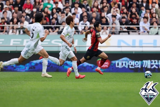 전북이 곧바로 반격했다. 전반 3분 안현범이 왼쪽 측면에서 올린 크로스를 김진수가 강한 왼발 슈팅으로 연결했다. 볼은 빨랫줄처럼 날아갔지만 골대 위로 살짝 벗어났다. 이어 전방압박을 통해 볼을 따낸 전북의 공격이 이준호의 슈팅까지 연결됐지만 백종원 골키퍼가 막아냈다.