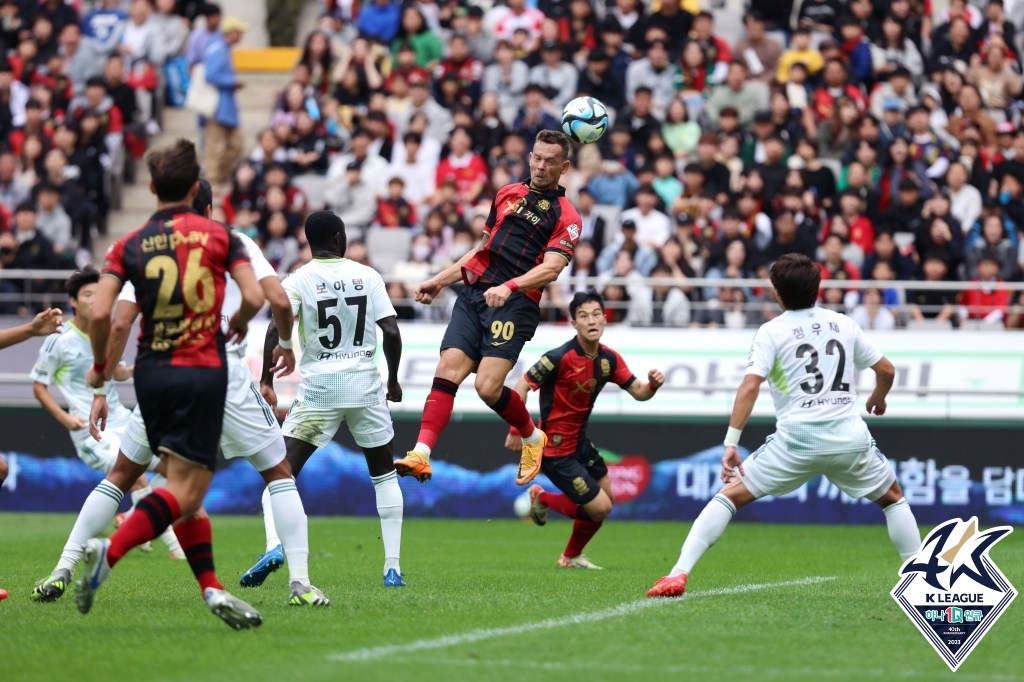이날 위르겐 클린스만 한국 A대표팀 감독이 경기를 지켜봤다. 내일(9일) A대표팀이 파주 국가대표트레이닝센터(NFC)에서 소집되는 가운데 클린스만 감독은 10월 A매치 2연전 대표팀 명단에 오른 문선민과 김진수, 김주성 등을 지켜봤다.