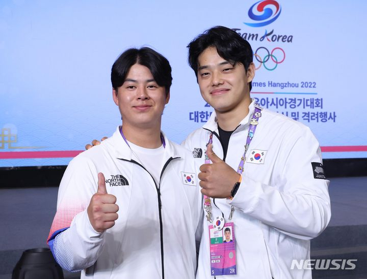 특히 전날 금메달을 목에 건 프로야구 노시환, 문동주(이상 한화)과 프로축구 백승호(전북), 정우영(슈투트가르트), 양궁 3관왕 임시현(한국체대)도 자리를 찾았다. 임시현은 수영 김우민(강원도청)과 함께 이번 대회 한국의 유이한 3관왕으로서 한국 남녀 최우수선수(MVP)로 선정됐다. 상금으로 3000만 원이 주어질 예정이다.