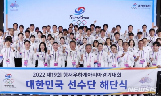 대한체육회는 8일(한국시간) 중국 저장성 항저우 그랜드 뉴 센추리 호텔 대한체육회 스포츠외교라운지에서 대회 결산 기자회견과 함께 해단식을 열고 선수와 코치진의 노고를 치하했다.