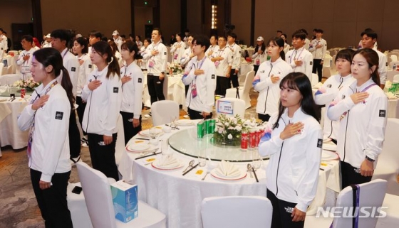 이어 장재근 선수촌장은 이번 대회 성과를 보고한 뒤 "여러분이 최선을 다해 열심히 뛰는 모습에 국민은 감동했을 것"이라며 "파리 올림픽을 위해 정진해서, 더 좋은 모습으로 열심히 해주시길 바란다"고 선수단을 독려했다.