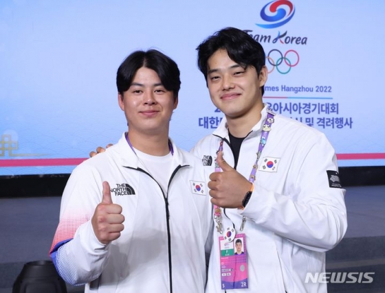 특히 전날 금메달을 목에 건 프로야구 노시환, 문동주(이상 한화)과 프로축구 백승호(전북), 정우영(슈투트가르트), 양궁 3관왕 임시현(한국체대)도 자리를 찾았다. 임시현은 수영 김우민(강원도청)과 함께 이번 대회 한국의 유이한 3관왕으로서 한국 남녀 최우수선수(MVP)로 선정됐다. 상금으로 3000만 원이 주어질 예정이다.