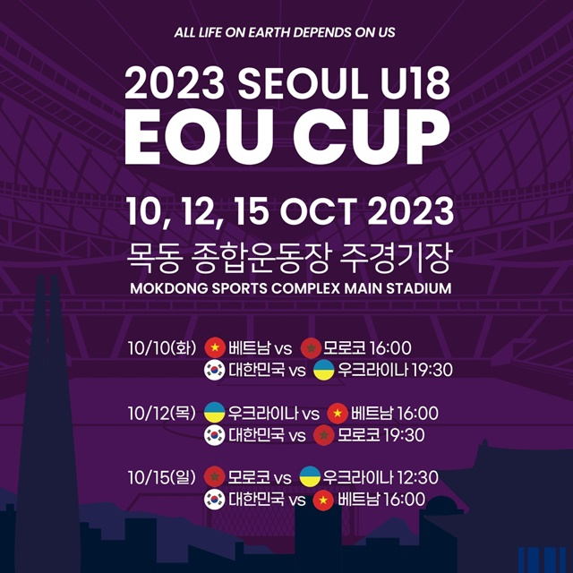 대한민국, 우크라이나, 모로코, 베트남 등 4개국의 18세 이하(U-18) 대표팀이 참가하는 2023 서울 EOU컵 U-18 청소년 대회가 9일 미디어데이를 통해 개막을 알렸다. 이번 대회는 오는 10일, 12일, 15일 총 3일간 서울 목동종합운동장 주경기장에서 열린다. 대한민국을 비롯해 모로코, 우크라이나, 베트남 등 총 4개 팀이 참가하고, 풀리그 방식으로 각 팀별로 한 경기씩 치러 최종 우승팀을 결정한다. 이번 대회에는 각 국가별 2005년생 이후 출생한 특급 유망주들이 명단에 포함됐다.