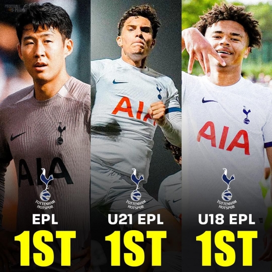 축구 콘텐츠 제작소 ‘풋볼 아레나’는 10일 흥미로운 사실을 언급했다. 토트넘 1군, U-21, 18 모두가 리그에서 1위를 질주한다는 것이다.