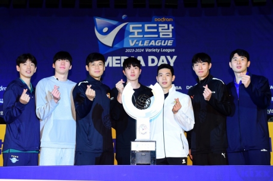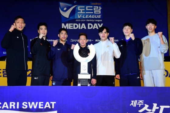한국배구연맹(KOVO)은 11일 서울특별시 강남구 청담동 리베라호텔 베르사이유홀에서 열린 2023~2024 V리그 남자부 미디어데이를 개최했다. 감독, 국내 선수, 외국인 선수, 아시아쿼터 선수 순으로 대한항공의 토미 틸리카이넨 감독-한선수-링컨 윌리엄스-마크 에스페호, 현대캐피탈의 최태웅-허수봉-아흐메드 이크바이리-차이 페이창, 한국전력의 권영민-서재덕-타이스 덜 호스트-이가 료헤이, 우리카드의 신영철-김지한-마테이 콕-오타케 잇세이, OK금융그룹의 오기노 마사지-이민규-레오나르도 레이바-바야르사이한 밧수, KB손해보험의 후인정-황승빈-안드레스 비예나-리우훙민, 삼성화재의 김상우-노재욱-요스바니 에르난데스, 에디 자르가차 등 7개 팀이 모두 참여했다.