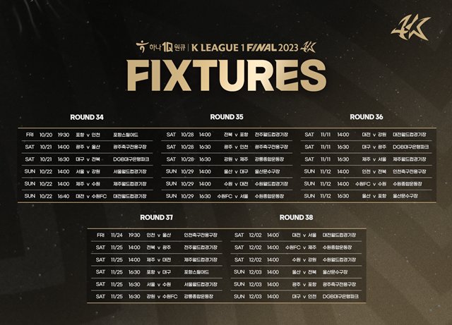 한국프로축구연맹이 하나원큐 K리그1 2023 파이널 라운드 일정을 발표했다.