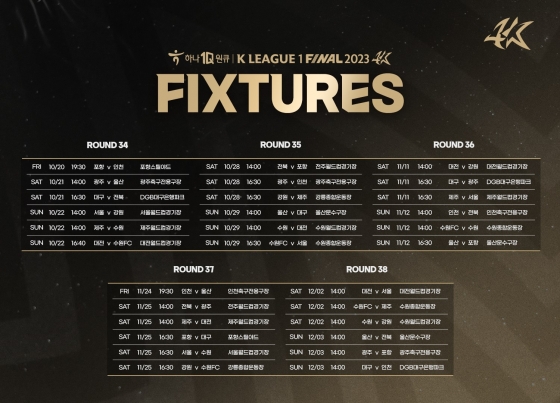 [스포탈코리아] 반진혁 기자= 하나원큐 K리그1 2023 파이널 라운드 일정을 발표됐다.