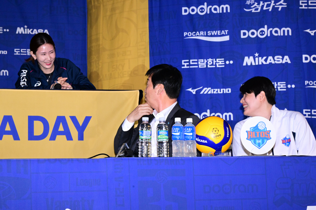 이에 박정아는 "우리 팀에 이적해 온 선수가 많아서 우리 팀이 효과가 있을 것 같다. 나와 (채)선아가 FA로 왔기 때문에 선아가 잘할 것 같다"면서 "같이 있었던 시간 동안 김종민 감독님과 유나 언니가 잘 가르쳐 주시고 잘 도와줘서 감사했고, 가서도 잘하는 모습 보여드릴테니 응원해주시면 좋겠다"고 활짝 웃었다.