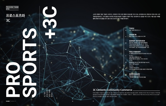 이번 호에서는 콘텐츠(Contents), 커뮤니티(Community), 커머스(Commerce)를 활용해 고객을 확보하는 방법에 대한 고민과 함께 콘텐츠·팬·상품을 모두 갖추고 있는 프로스포츠 산업의 성장 기회에 대한 전문가들의 제언을 담았다.