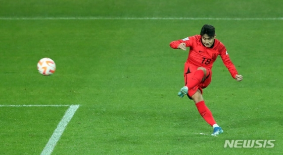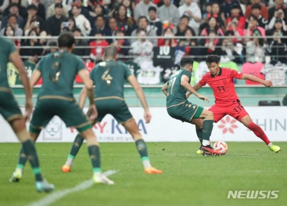한국은 공격을 이어갔다. 전반 24분 풀백 이기제가 페인팅 모션을 취해 상대 수비를 속인 뒤 먼 거리에서 슈팅을 시도했다. 강력한 힘이 실리지는 않았다. 상대 골키퍼가 쉽게 잡아냈다. 전반 31분 공격 과정에서 황희찬이 그라운드에 쓰러져 아파했지만, 다행히 큰 부상은 없었다. 교체 없이 경기가 진행됐다.