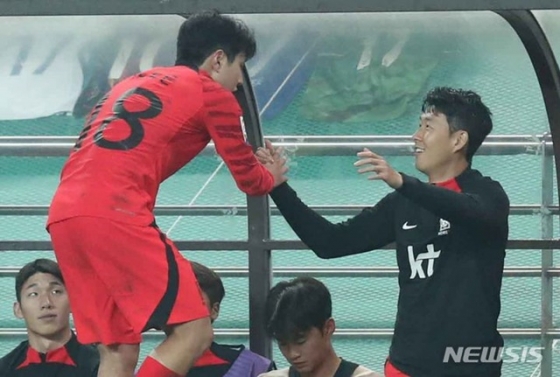 대한민국 축구대표팀 주장 손흥민(토트넘)이 그 누구보다 '황금재능' 이강인(파리 생제르맹)의 득점에 기뻐했다.