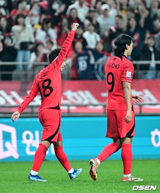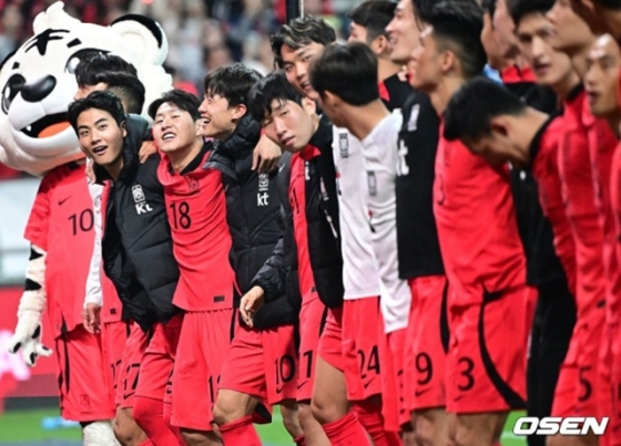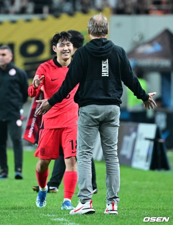 이강인을 꼭 안아준 '캡틴' 손흥민은 "모든 선수들을 안아주며 고생했다고 얘기하고 싶었다"며 "대표팀 첫 골을 넣는 것은 선수 누구나 꿈꾸는 순간이다. 이강인이 골을 터뜨려 좋았다"고 칭찬했다.