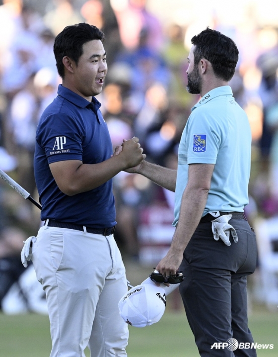 1번 홀과 3번 홀, 4번 홀(이상 파4)에서 버디를 낚으며 기분 좋게 시작한 김주형은 5번 홀(파3)과 6번 홀(파4)에서 보기로 주춤했지만 9번 홀(파5) 버디로 전반을 마쳤다.