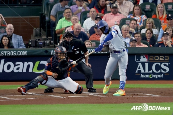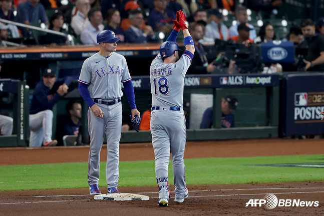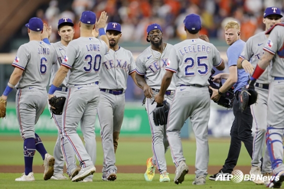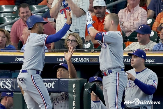 텍사스는 17일(한국시간) 미국 텍사스주 휴스턴 미닛메이드파크에서 휴스턴 애스트로스와 2023 미국프로야구 메이저리그(MLB) ALCS 2차전에서 1회에 4점을 뽑아낸 화력과 5-4로 이겼다.