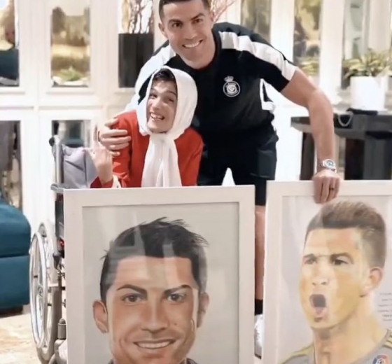 호날두는 지난달 18일 이란 프로축구팀 페르세폴리스와 2023~2024 아시아축구연맹(AFC) 챔피언스리그(ACL) E조 경기를 위해 이란 테헤란을 방문했을 때, 발로 그림을 그리는 장애인 화가 파타미 하마미를 만나 그림을 선물 받고 포옹을 했다.