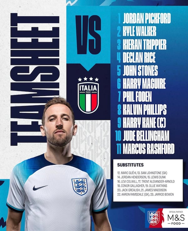 홈팀 잉글랜드는 4-2-3-1 전형을 택했다. 최전방에 해리 케인을 필두로 2선에 마커스 래시포드-주드 벨링엄-필 포든이 출전했다. 중원에는 데틀란 라이스-칼빈 필립스가 선택받았다. 수비엔 키어런 트리피어-해리 매과이어-존 스톤스-카일 워커가 호흡을 맞췄다. 골키퍼 장갑은 조던 픽포드가 꼈다.