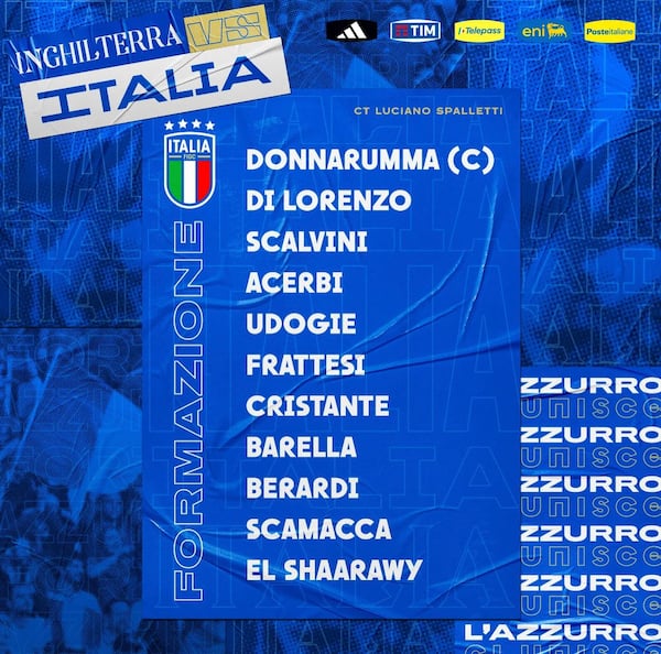 원정팀 이탈리아는 4-3-3 포메이션으로 나왔다. 공격엔 스테판 엘 샤라위-잔루카 스카마카-도메니코 베라르디가 나섰다. 중원엔 니콜로 바렐라-브라이나 크리스탄테-다비데 프라테시가 이름을 올렸다. 수비 라인은 데스티니 우도기-프란체스코 아체르비-조르조 스칼비니-조바니 디 로렌초로 구성됐다.골문은 잔루이지 돈나룸마가 지켰다.