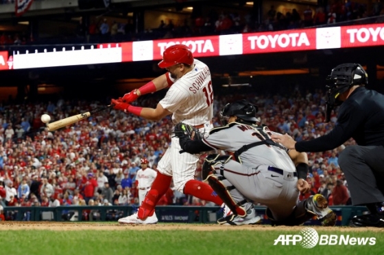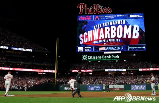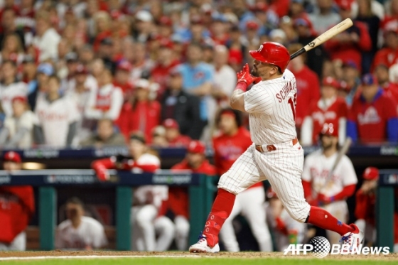 이렇게 기다려지는 1할 타자의 타석이 있었을까. 메이저리그 최초 정규시즌 1할 타율-40홈런의 진기록을 세운 카일 슈와버(30)가 1번타자로서 필라델피아 필리스의 2연승에 앞장섰다.