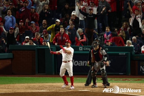 흠잡을 곳 없는 승리였다. 애리조나 선발로는 과거 SK 와이번스(현 SSG 랜더스)에서 활약했던 메릴 켈리가 나섰다. 앞선 LA 다저스와 디비전 시리즈에서 6⅓이닝 무실점으로 팀의 챔피언십시리즈 진출을 이끈 켈리지만, 이날은 필라델피아의 홈런 3방에 와르르 무너졌다.