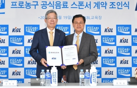 KBL은 "동아오츠카와 이날 KBL센터에서 공식 음료 스폰서 조인식을 가졌다"고 19일 밝혔다. KBL 김희옥 총재와 동아오츠카 조익성 대표이사 사장, 동아오츠카 관계자 등이 참석했다.