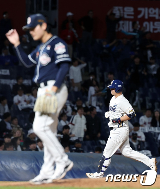 하위타선의 반란이 빛났다. 선발 태너 털리의 난조 속 3회까지 3-0으로 끌려가던 NC는 4회 가을야구에 처음 나선 서호철의 그랜드슬램과 올 시즌 국가대표 포수로 거듭난 김형준의 백투백 홈런으로 단숨에 역전에 성공했다. 두산에 동점을 허용했으나 결정적인 실책과 폭투를 틈타 역전에 성공하며 마지막에 웃었다.