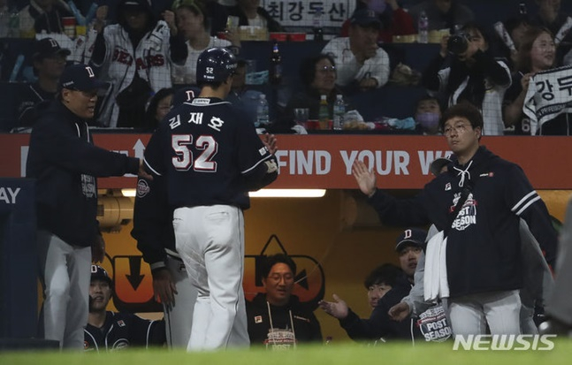 '가을의 제왕' 두산의 집중력이 초반부터 남달랐다. 백전노장이 포문을 열었다. 김재호가 유격수 방면 깊은 땅볼 타구를 날린 뒤 전력 질주해 내야 안타를 만들어냈다. 호세 로하스의 잘 맞은 타구가 우익수 방면 2루타가 됐다. 슬라이더를 공략해 1사 2,3루 밥상을 차렸다. 양의지의 타구가 유격수 김주원의 글러브에 걸렸지만 3루 주자를 불러들이기엔 충분했다. 1-0 두산의 리드.