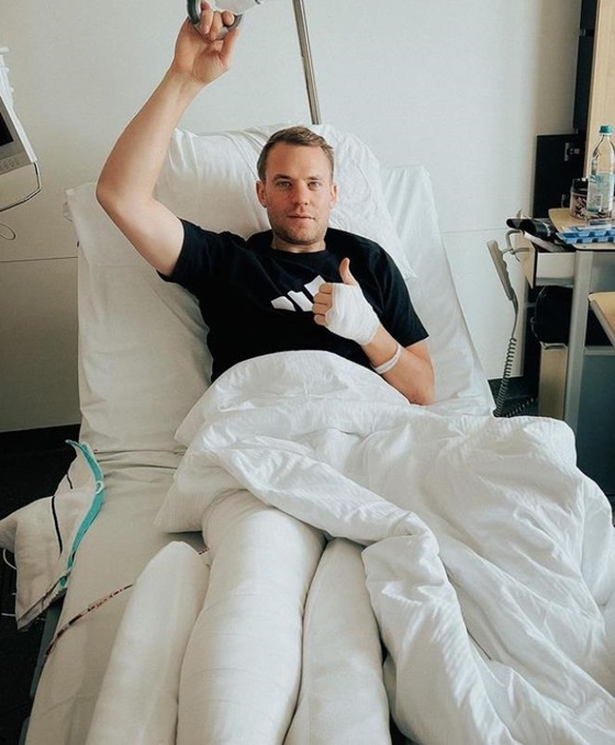 노이어는 지난해 12월 스키를 타다가 오른쪽 다리가 부러지는 큰 부상을 당했다. 시즌이 한창 진행 중에 전해진 청천벽력이었다. 당시 그는 자신의 소셜네트워크서비스(SNS)에 "머리를 식히려 스키를 타다 다리가 부러졌다. 수술은 잘 끝났다. 의료진에 감사하다. 하지만 나의 이번 시즌이 끝났다는 사실에 마음이 아프다"고 전한 바 있다. 노이어는 수술 직후 다리에 깁스를 한 채 엄지를 치켜세운 사진을 올리며 복귀를 다짐했다.
