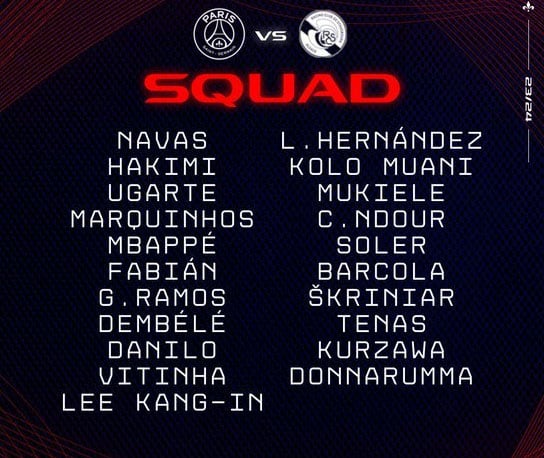 [스포탈코리아] 남정훈 기자= 파리 생제르맹이 소집 명단을 발표했다.