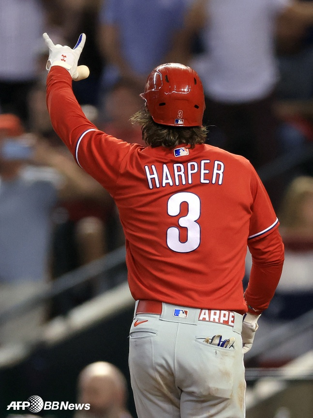 하퍼 스타성 미쳤다! 1회 홈 스틸에 6회 쐐기 홈런까지... 슈와버는 PS 통산 20홈런 돌파, 필라델피아 6-1 완승