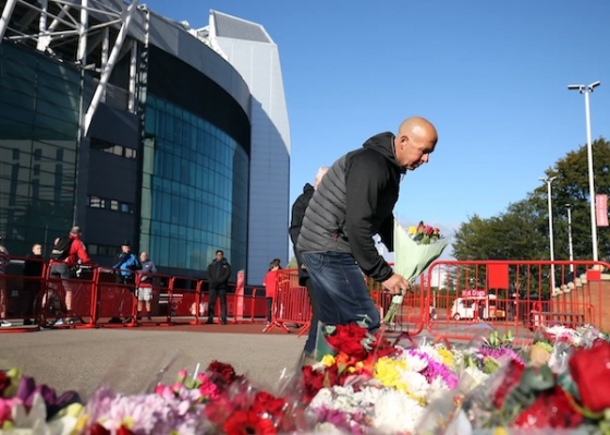 [스포탈코리아] 주대은 기자= 맨체스터 유나이티드 팬들이 故 바비 찰튼 경 동상 앞에 꽃과 유니폼 등을 놓았다.