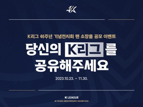 연맹은 "'K리그 40주년 기념 전시회'는 K리그 40년 역사를 기록한 연대기와 다양한 사진, 영상 등 미디어 전시, 축구를 사랑하는 작가들과 함께 작업한 아트워크 전시, 시간의 흔적이 고스란히 묻어있는 팬들의 소장품 전시로 꾸며진다"고 23일 소개했다.