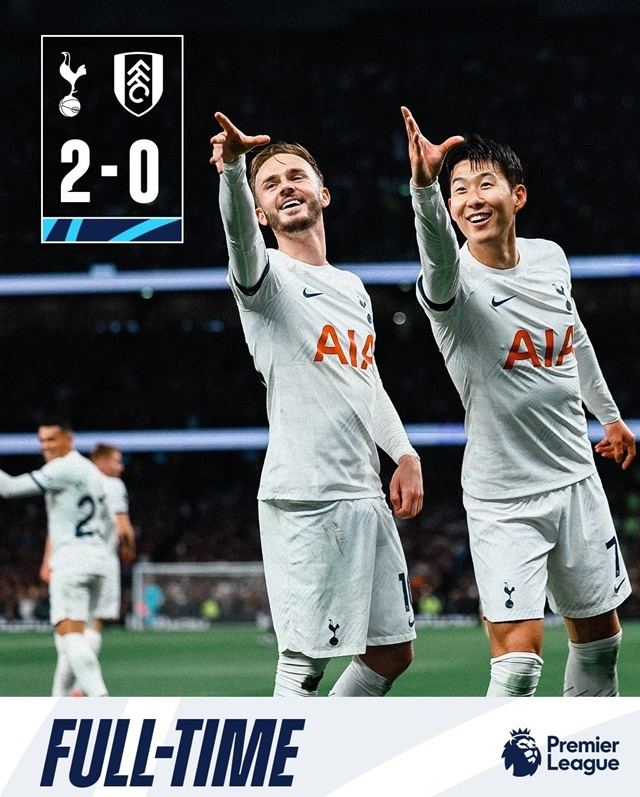 토트넘은 24일(한국시간) 영국 런던의 토트넘 홋스퍼 스타디움에서 열린 2023~2024 EPL 9라운드 풀럼과 홈경기에서 2-0으로 이겼다.