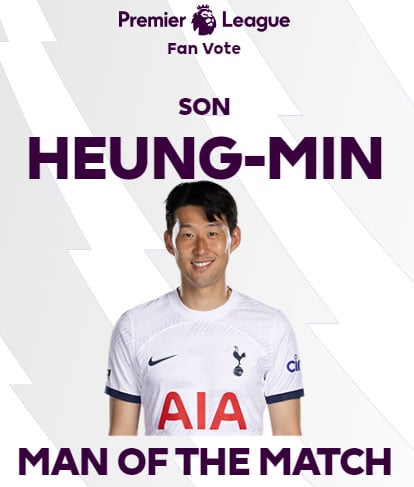 토트넘은 24일 오전 4시(한국시간) 영국 런던에 위치한 토트넘 홋스퍼 스타디움에서 치러진 풀럼과의 2023/24시즌 잉글리시 프리미어리그(EPL) 9라운드 경기에서 2-0으로 승리했다.