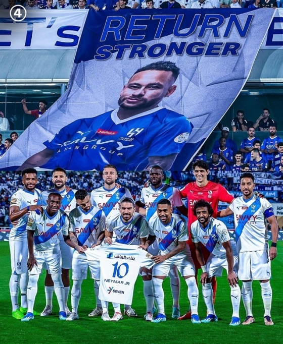 하지만 소속팀 알힐랄과 동료들, 팬들이 네이마르에게 조금이나마 힘이 되고자 감동 이벤트를 준비했다. 알힐랄 선수들과 팬들은 지난 21일 알칼리즈와 홈경기에 앞서 네이마르 유니폼과 대형 플래카드를 준비해 빠른 회복을 바란다는 마음을 전했다.