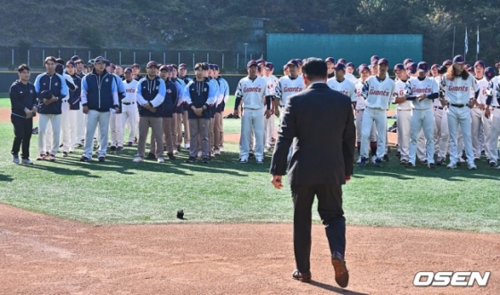 김 감독은 25일 경남 김해시에 위치한 상동 야구장에서 롯데 선수단과 상견례를 진행했다. 이날 행사에는 예비 FA(프리에이전트) 전준우와 안치홍을 제외한 대부분의 선수들과 코칭스태프가 참석해 김 감독과 인사를 나눴다.