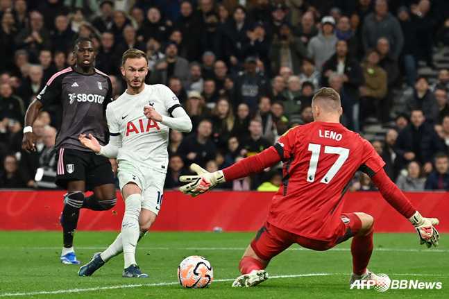 0-0으로 팽팽히 맞선 전반 36분 히샬리송이 아크서클에 있던 손흥민에게 패스했다. 손흥민이 수비수를 벗겨낸 뒤 오른발 슈팅으로 골망을 흔들었다. 독일 대표팀 출신 골키퍼 베른트 레노가 몸을 날렸지만 역부족이었다. 두 팔을 벌리며 포효한 손흥민은 '무릎 슬라이딩' 세리머니를 펼쳤다.